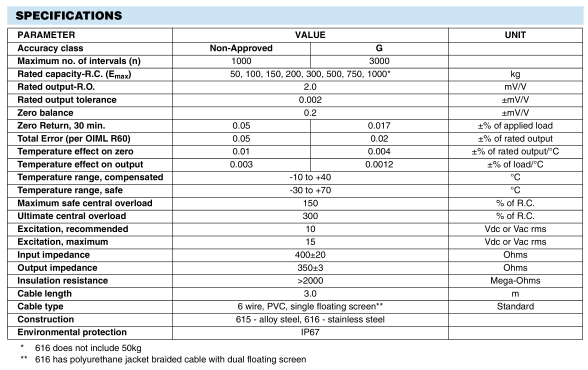 美國特迪亞-亨特利Tedea-Huntleigh 616稱重傳感器說明: