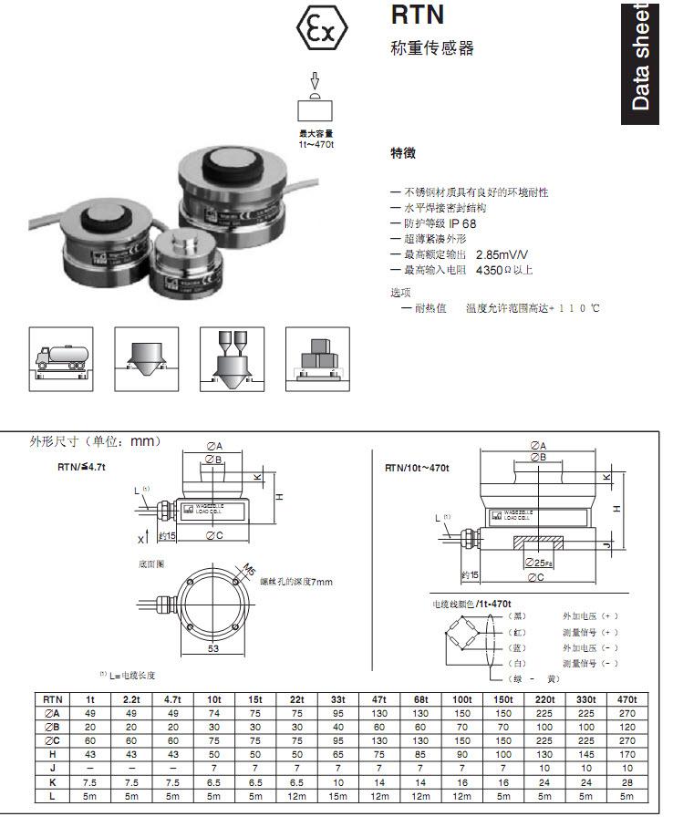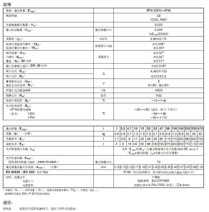 德國HBM RTN0.05/22T稱重傳感器技術參數圖: