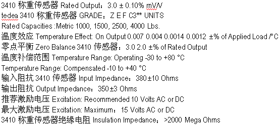 美國威世特迪亞vishay tedea 3410-2000KG稱重傳感器參數(shù):