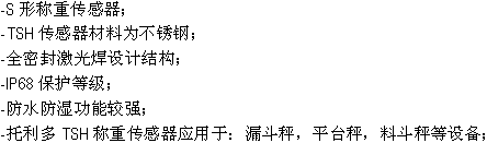 TSH-300kg稱重傳感器為不銹鋼材質(zhì),全密封激光焊設(shè)計(jì),是廣泛應(yīng)用于懸浮漏斗稱的結(jié)構(gòu)拉伸S-形稱重傳感器。(TSH-300kg weighing sensor for the stainless steel material, seal design, laser welding is widely applied in the structure of the suspended funnel said tensile S - type weighing sensor.)