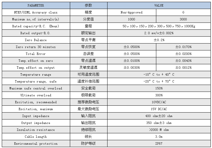 量程可選:50kg,100kg,150kg,200kg,300kg,500kg,750kg,1000kg,