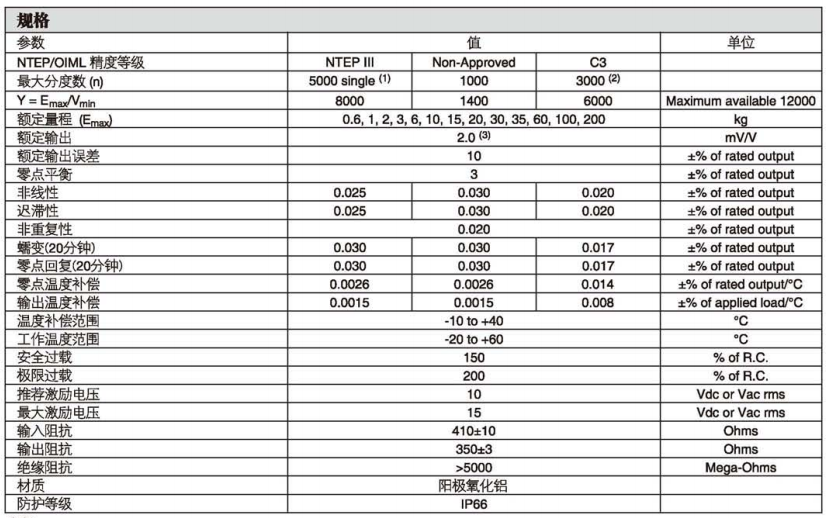 (3) 1kg及以下為1mV/V