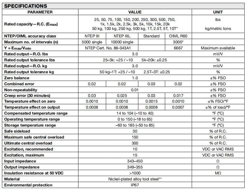 •NTEP III級貿易認證:5000d,IIIL:10000d和OIML,R-60 3000d可用