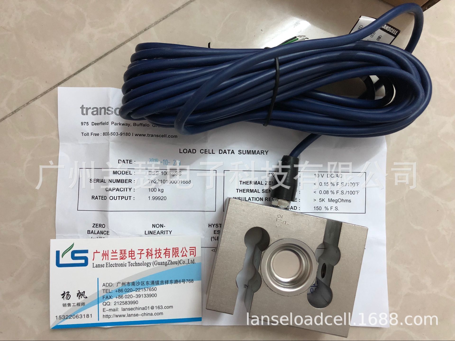 美國transcell BSS-100kg稱重傳感器質量保證合約