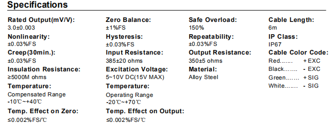 稱重傳感器技術(shù)參數(shù)