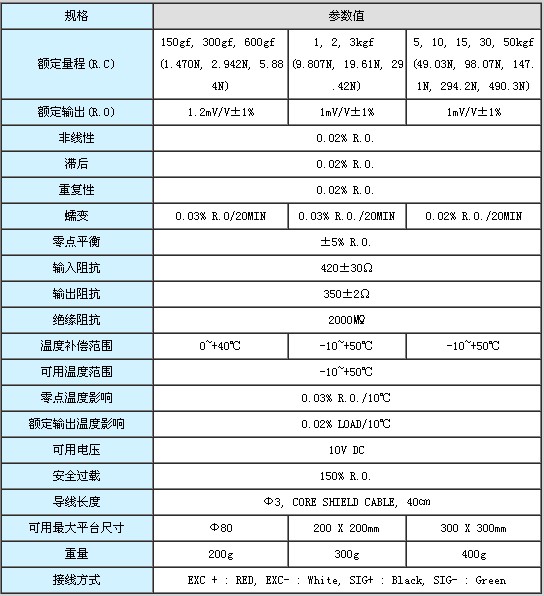 韓國(guó)Dacell CB1A-1kgf稱重傳感器技術(shù)參數(shù):