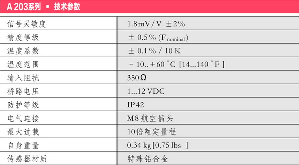 瑞士FMS A203張力傳感器技術(shù)參數(shù):