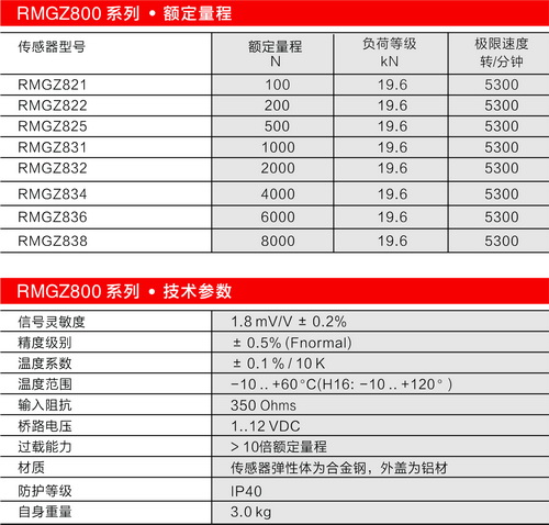 瑞士FMS RMGZ800張力傳感器技術參數: