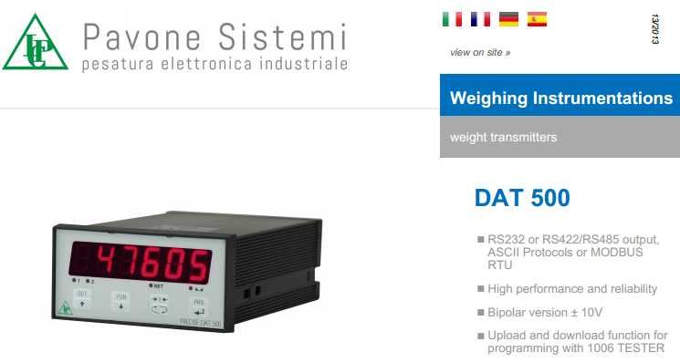 意大利PAVONE DAT500重量變送器產品特點: