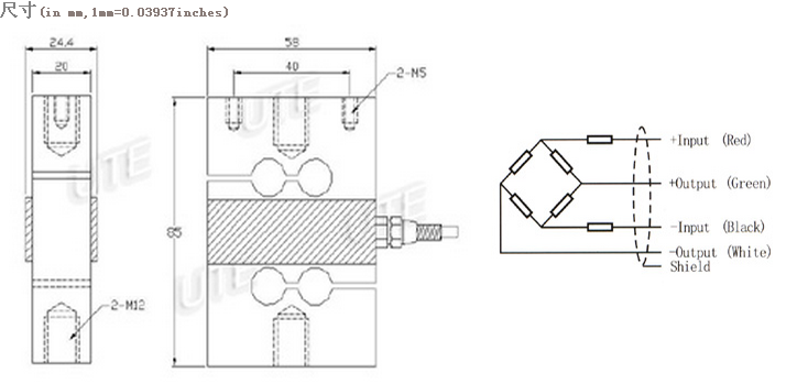 臺灣UTE UNS稱重傳感器尺寸圖: