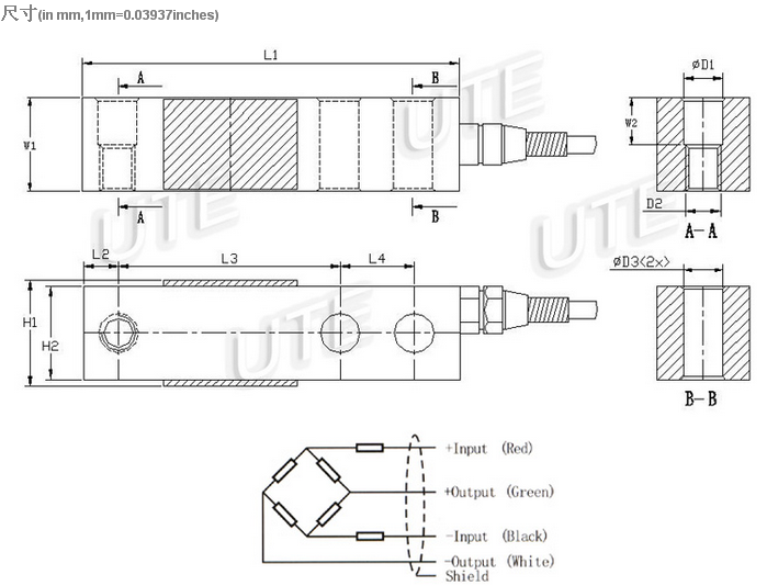 描述:臺灣UTE懸臂梁UES型傳感器的秤量從0.25t到10t,全合金鋼結構,密封緊密;
