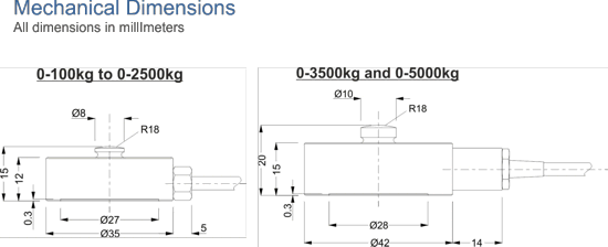 This range of load cells is available with ranges covering 0-100kg to 0-5000kg.