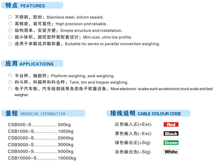 CSB-S傳感器,志美CHIMEI CSB-S稱重傳感器規(guī)格: