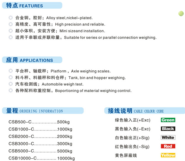 CSB-C傳感器,志美CHIMEI CSB-C稱重傳感器規格: