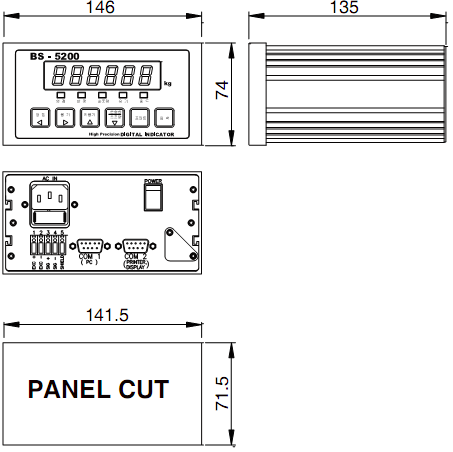 韓國Bongshin BS-5200稱重顯示儀表安裝尺寸
