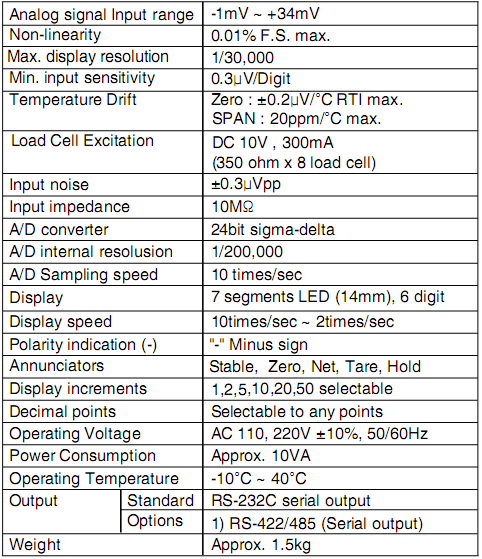 韓國Bongshin BS-5200稱重儀表技術指標