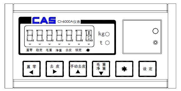 零點燈:當前稱重值為0kg時燈亮