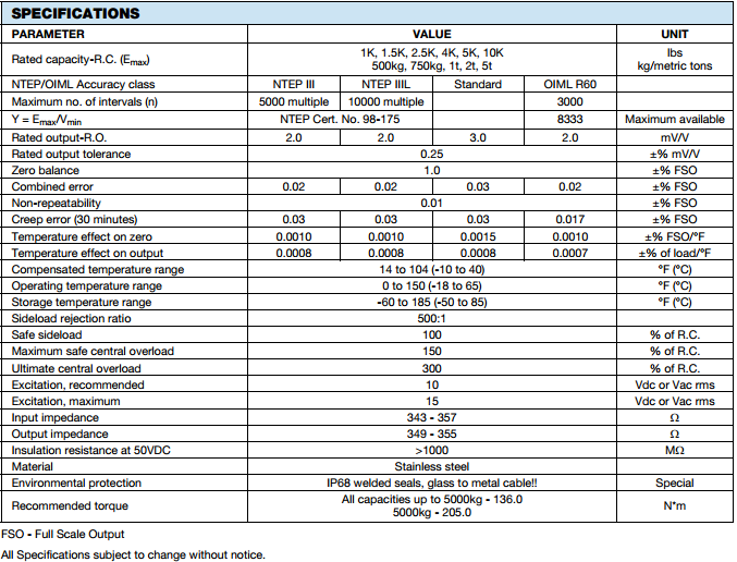 Hermetically Sealed Shear Beam Load Cell Sensortronics Model 65083 has capacity ranges of 1,000 to 10,000 lbs. and exceeds NIST H-44 requirements, with stainless steel construction, and extended temperature ranges available, it is Factory Mutual System Approved for Classes I, II, III; Divisions 1 and 2; Groups A through G.