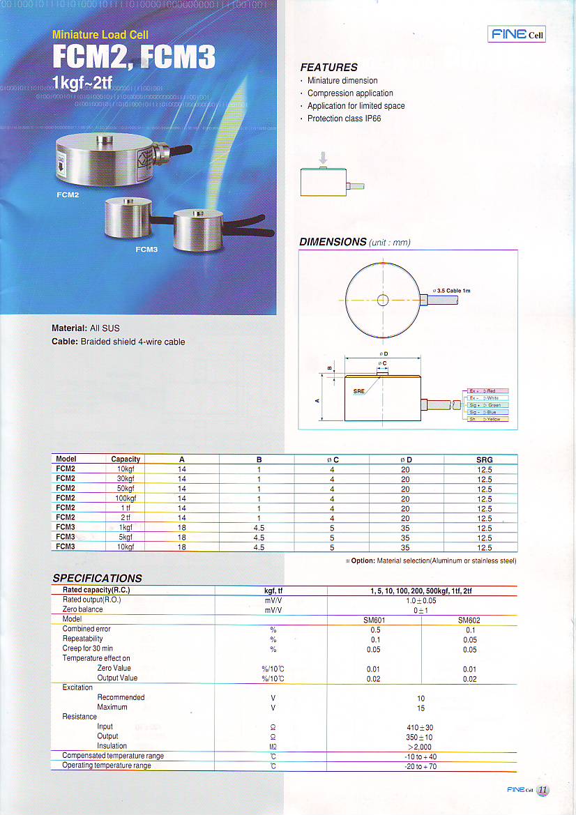 韓國Fine FCM2,FCM3稱重傳感器參數: