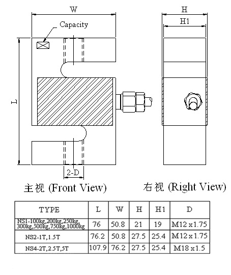 臺灣Mavin NS1稱重傳感器產品尺寸: