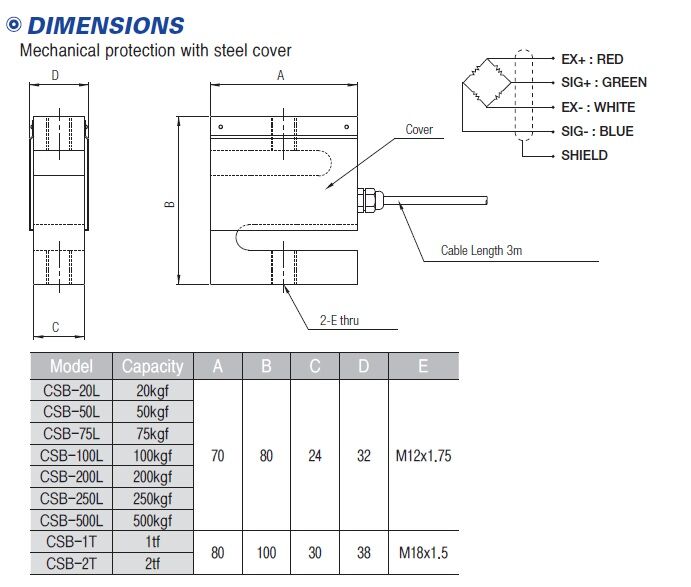 韓國CURIOSITY拉壓力S型CSB稱重傳感器采用鋁合金材質膠密封防護處理,安裝容易,使用方便,適用于吊秤,配料秤,機改秤等電子測力稱重系統.額定載荷20kg,50kg,75kg,100kg,200kg,250kg,500kg,1t,2t