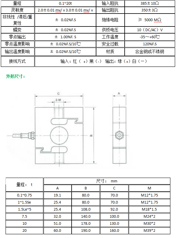產品類型:稱重傳感器/拉壓力S型傳感器