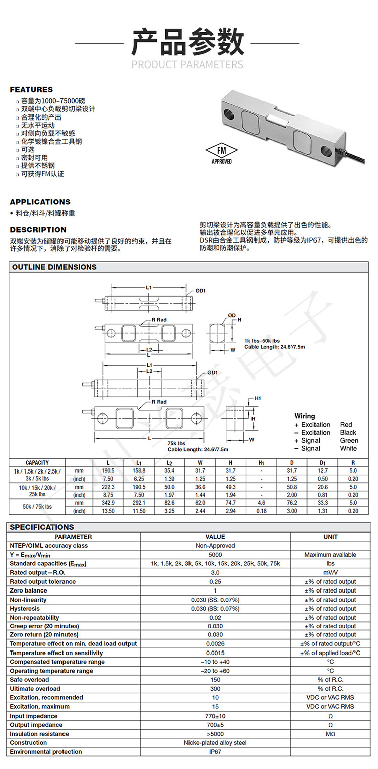 美國Celtron DSR-50KLB(DSR-22.7T)稱重傳感器產品參數: