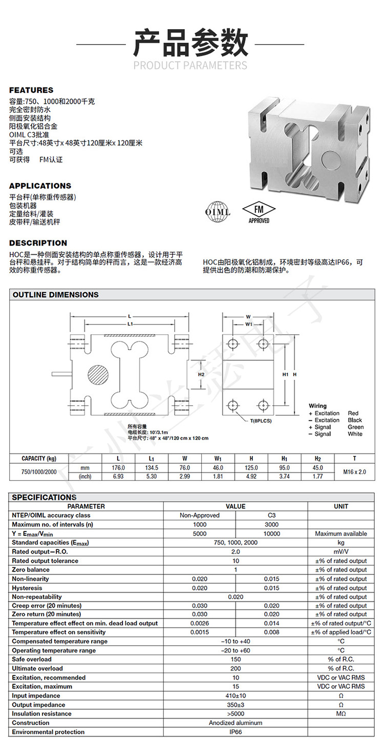 美國Celtron HOC-2t稱重傳感器產(chǎn)品參數(shù):