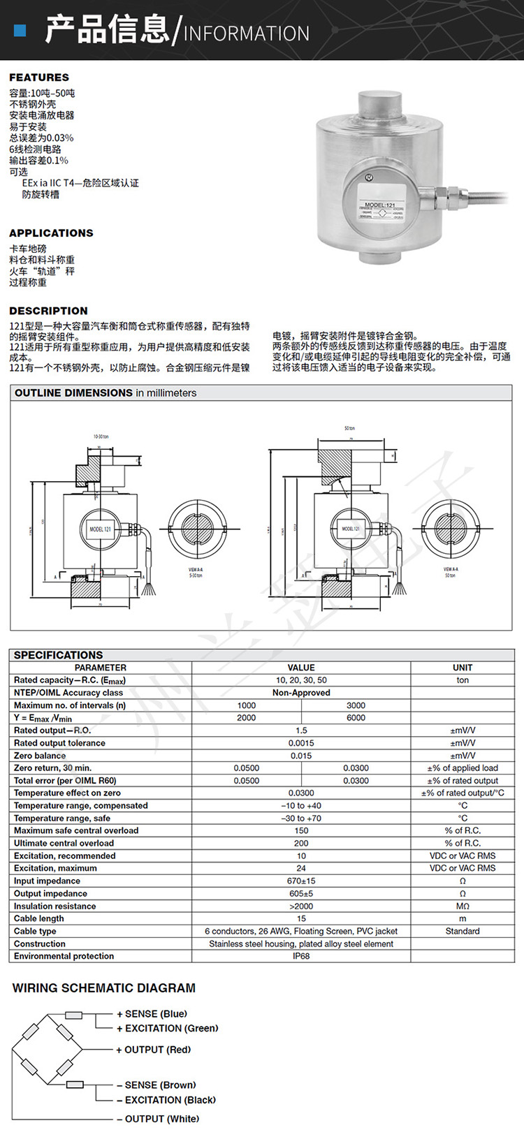 121(10T-30T)稱重傳感器,美國特迪亞亨特利 121柱式傳感器