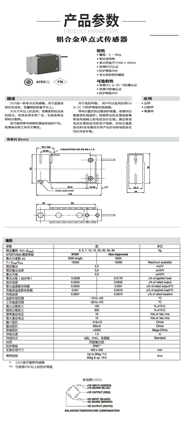 選用鋁材質,NTEP批準,可選IP67防護等級