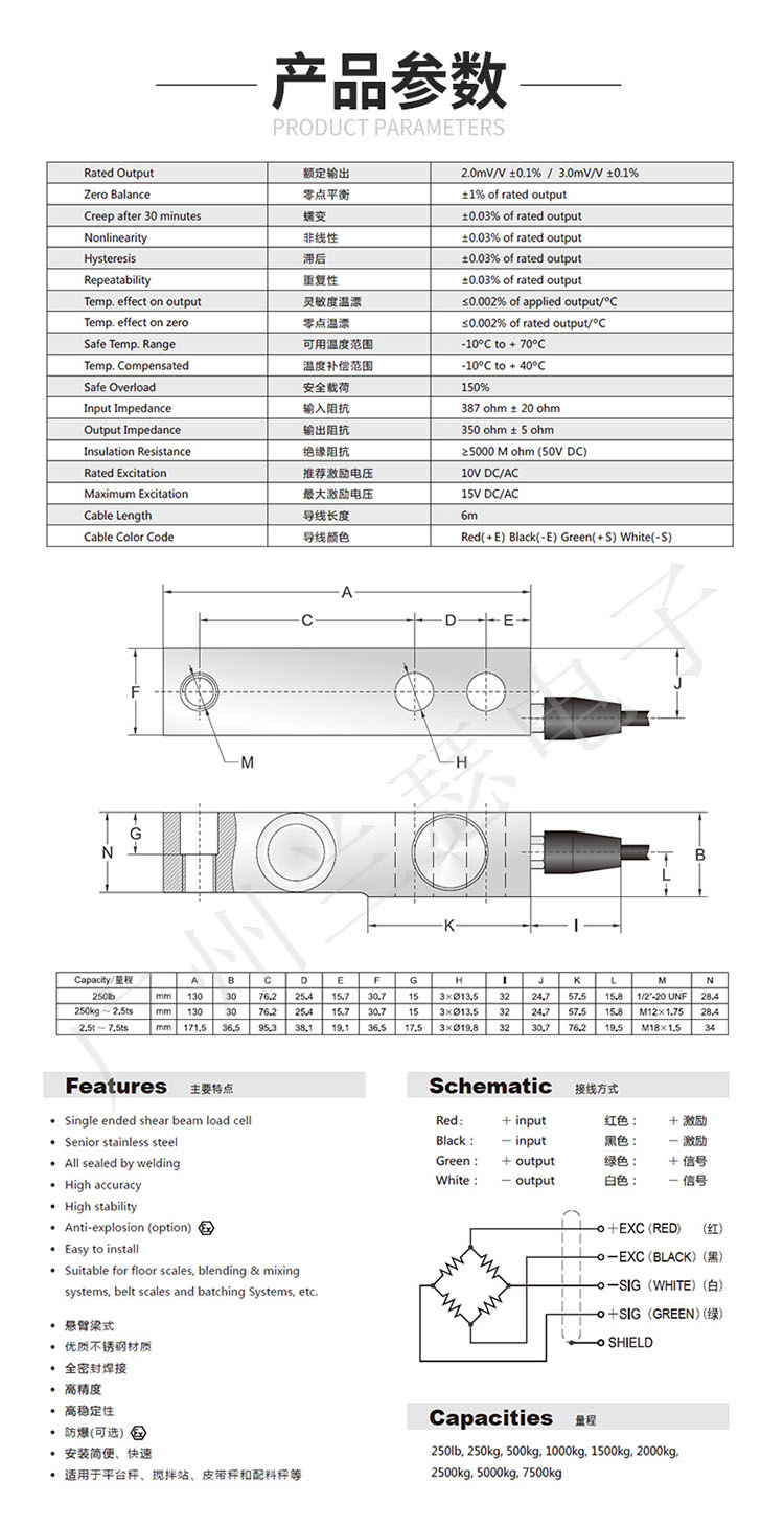 量程可選:250lb,250Kg,500Kg,1t,1.5t,2t,2.5t,5t,7.5t