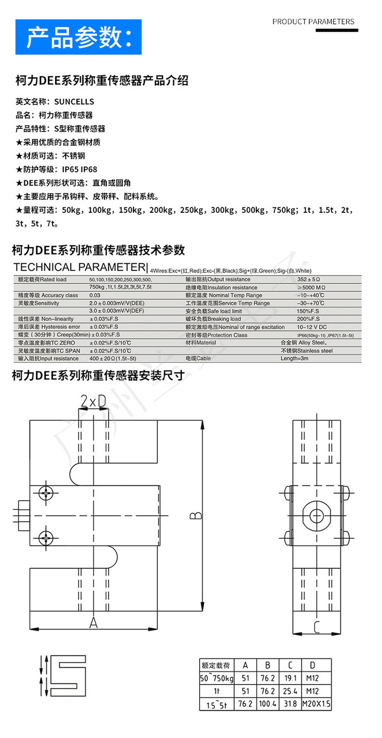 寧波柯力 DEE-1T稱重傳感器產品參數: