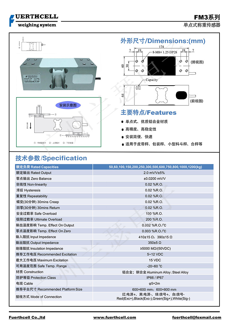 美國FUERTHCELL FM3-200KG稱重傳感器產品參數:
