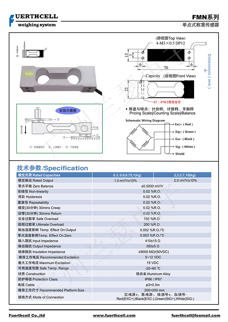 美國FUERTHCELL FMN-3KG稱重傳感器產品參數: