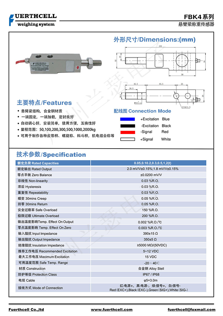 美國FUERTHCELL FBK4-200KG稱重傳感器產品參數: