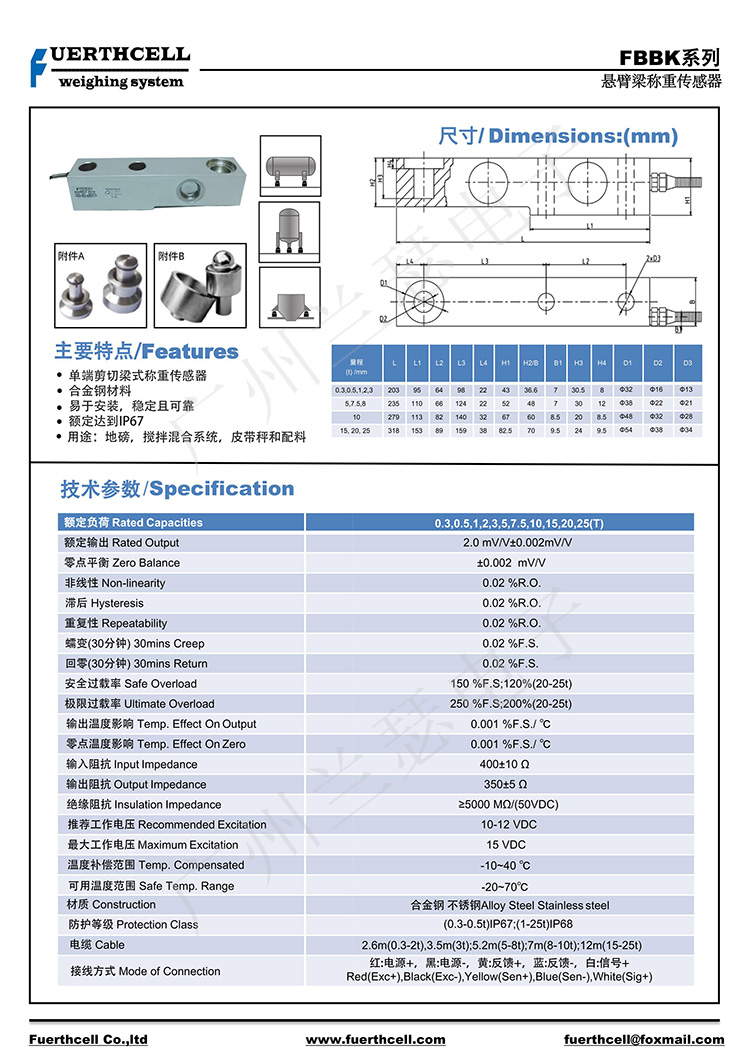 美國FUERTHCELL FBBK-1T稱重傳感器產品參數: