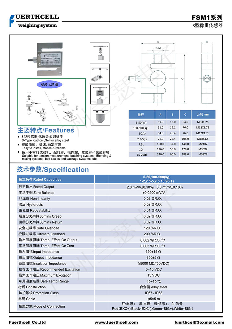 美國FUERTHCELL FSM1-100KG稱重傳感器產品參數: