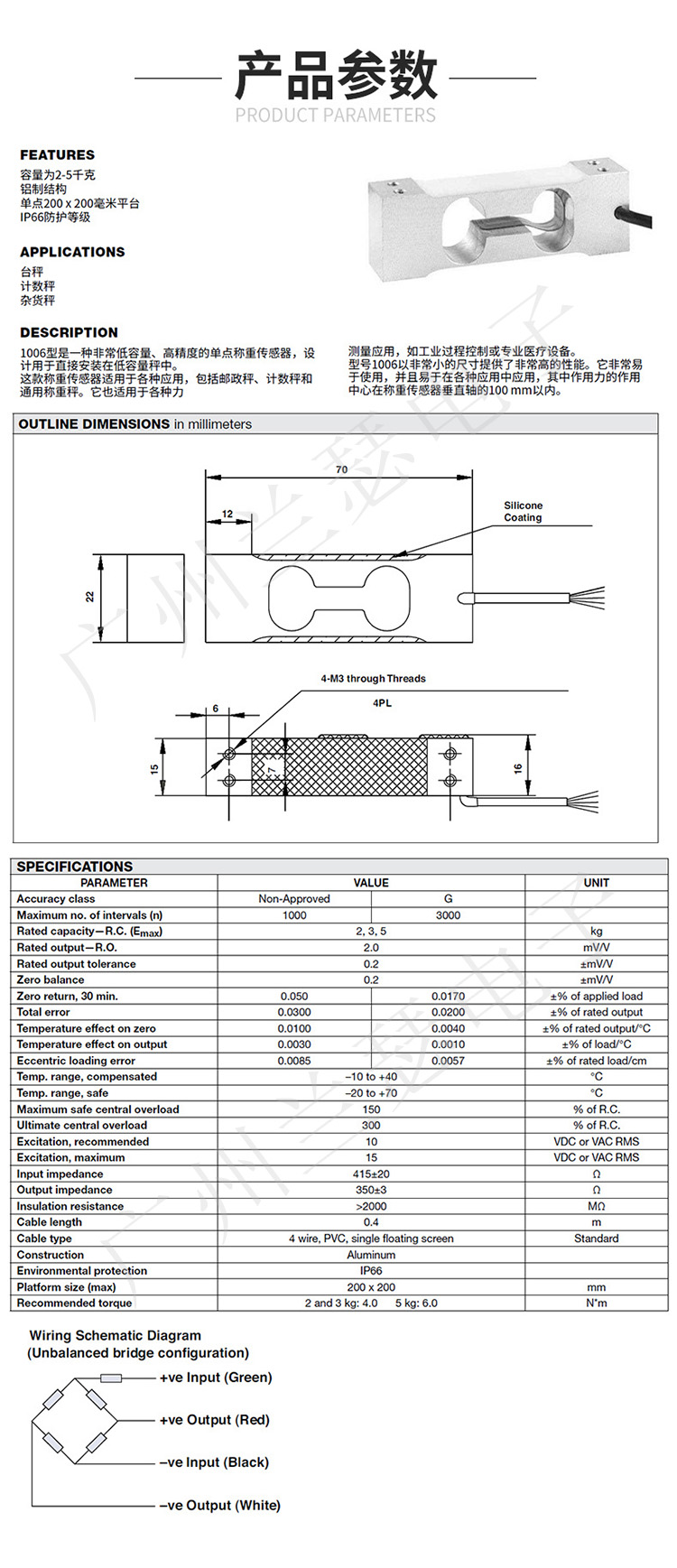 美國Tedea 1006-5kg稱重傳感器產(chǎn)品參數(shù):