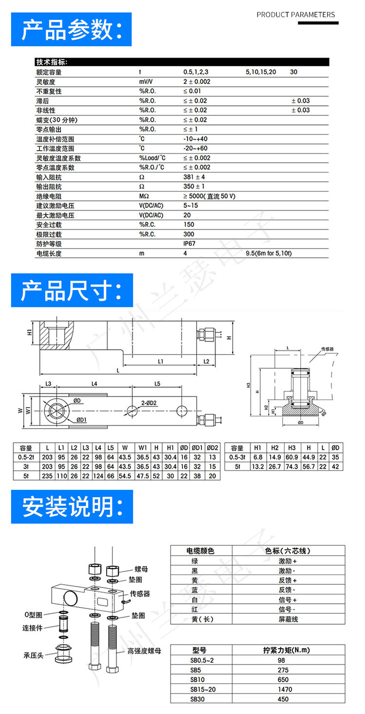 注:SB-0.5是梅特勒-托利多傳感器中容量為500KG0.5T)。所以容量為0.5t,那么型號就是SB-0.5。以止類推得到SB系列的所有型號。