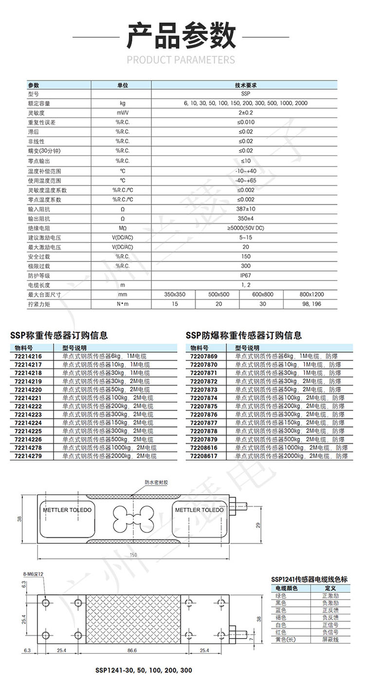 除梅特勒托利多SSP1241-100稱重傳感器其它熱銷型號: