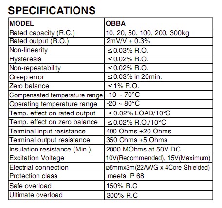 OBBA-100kg,OBBA-200kg,OBBA-300kg稱重傳感器主要特性: