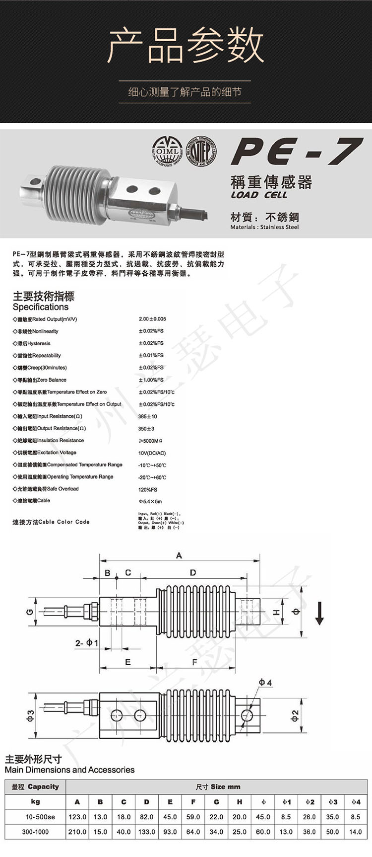 美國AC PE-7稱重傳感器技術參數: