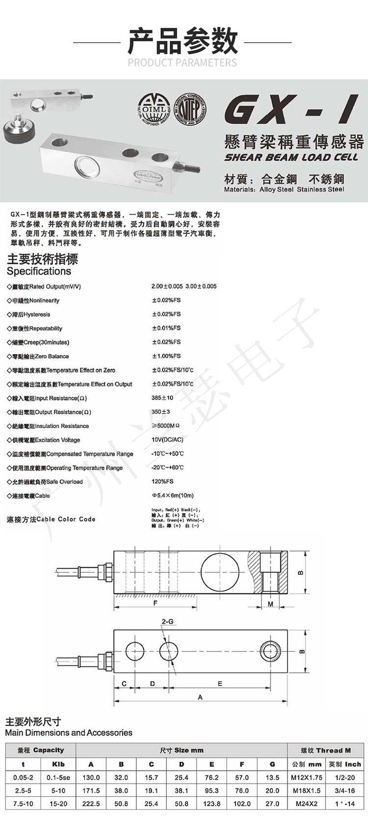 美國(guó)AC GX-1稱重傳感器技術(shù)參數(shù):
