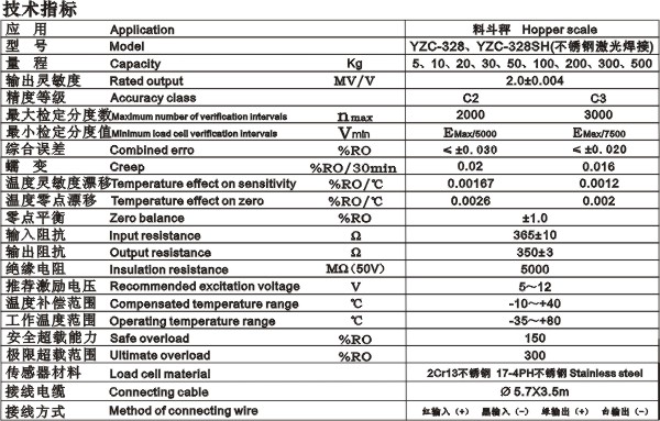 廣測GUANGCE YZC-328稱重傳感器技術指標