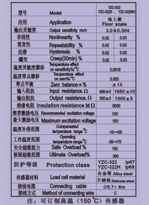 廣測GUANGCE YZC-322稱重傳感器技術參數