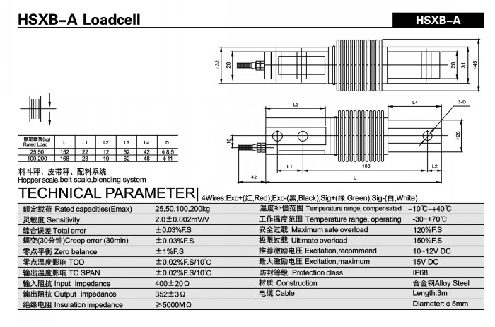 美國SUNCELLS HSXB-A-100KG稱重傳感器中文參數(shù)